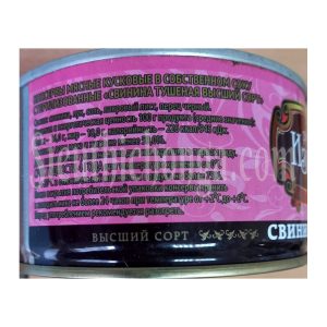 IZSK Nga – Các món ngon của lớp cao cấp. Những món ngon xứng đáng với bạn. Thịt lợn hầm với việc đặt thịt tối đa. Một sản phẩm tự nhiên không có chất bảo quản, thuốc nhuộm nhân tạo và chất nhũ hóa. Thành phần chỉ chứa thịt lợn, gia vị và nước dùng chất lượng cao tự nhiên, được giải phóng từ thịt trong quá trình nấu. Lớp cao hơn, Gost.