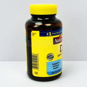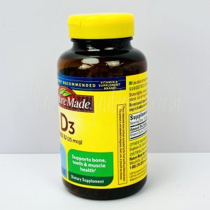Ngoài ra nếu chúng ta không đủ điều kiện tắm nắng mỗi ngày. Nguồn thức ăn không cung cấp đủ lượng vitamin D3 cơ thể cần. Chúng ta có thể chọn giải pháp đơn giản như là bổ sung viên uống bổ sung D3 Nature Made Vitamin D3 1000IU.